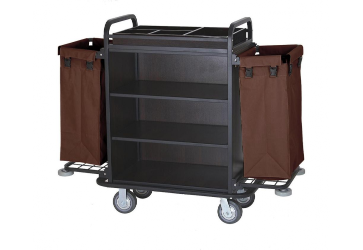 Vozík se skládá z pevné ocelové konstrukce s epoxidovým matným černým lakem. Další části vozíku jsou tvořeny laminátovými deskami v designu palisandr. Vozík je dále vybaven látkovými vaky, sklápěcími bočnicemi, dělící horní přihrádkou, kvalitními zátěžovými kolečky o průměru 150 mm s protinárazovou ochranou gumou na jejich obvodu.