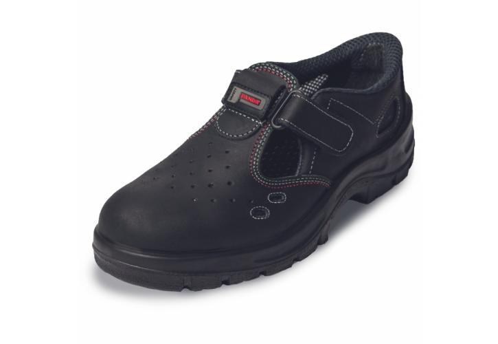 Bezpečnostní sandály s ocelovou tužinkou, antistatickou a protiskluzovou podrážkou odolnou pohonným hmotám, absorpcí energie v patě a svrškem z prodyšné kůže.
