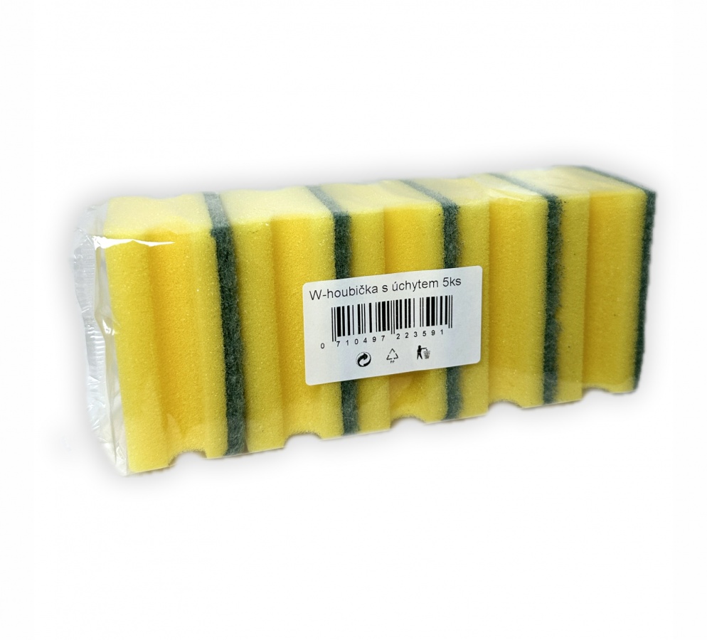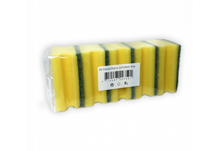 Univerzální houbička s rozměrem 7x9 cm, na mytí nádobí a ostatních ploch v kuchyni a domácnosti.