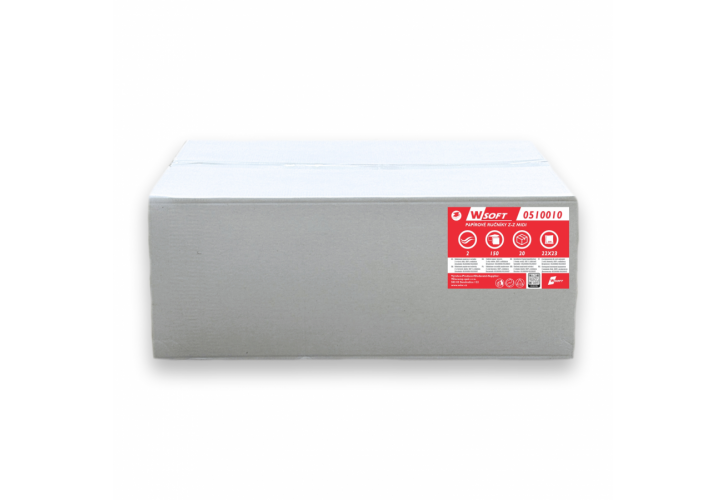 Papírové ručníky ZZ skládané 2vr., 100% celulóza. Barva bílá. Rozměr 22x23 cm. Karton obsahuje 20 balíčků po 150ks. Cena za balení. Váha 1 karton = 4,6 kg.